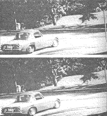 Процесс конструирования воспоминаний был весьма эффектно продемонстрирован Элизабет Лофтус и ее помощниками (Loftus et al., 1978). Они показали студентам Вашингтонского университета 30 слайдов, на которых были последовательно представлены разные стадии наезда автомобиля на пешехода. На одном, наиболее важном, слайде красный «Датсун» был запечатлен либо в момент остановки перед знаком «Стоп», или перед знаком «Уступите дорогу». Спустя некоторое время исследователи, наряду с другими вопросами, задавали одной группе испытуемых и такой: «Проезжал ли мимо красного “Датсуна” другой автомобиль, пока он стоял под знаком “Стоп”»? Другой группе испытуемых задавался тот же самый вопрос с той только разницей, что вместо знака «Стоп» в нем упоминался знак «Уступите дорогу». Затем обе группы смотрели слайды, представленные на рис. Б.3, и вспоминали, какой из них они уже раньше видели. Студенты, которым задавали вопрос, соответствующий тому, что они раньше видели, в 75% случаев давали правильные ответы. Те же, кому задавали вопрос, вводивший в заблуждение, давали правильные ответы только в 41% случаев; в большинстве случаев студенты отрицали, что видели то, что они действительно видели, и «вспоминали» то, чего никогда не видели.
