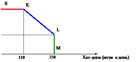 Джон открыл закусочную для водителей, выполняющих дальние рейсы. Он может организовать производство хот-догов и гамбургеров. Затраты на выпуск и продажу как хот-догов, так и гамбургеров составляют $1,5 за штуку. Ранее Джон производил и продавал 250 хот-догов, на которые установилась цена $2 за штуку. Теперь Джон хочет попробовать производить и продавать гамбургеры. Кривая производственных возможностей задана на графике: