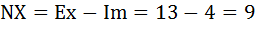 10) Чистый экспорт (net export – NX) представляет собой разницу между доходами от экспорта (export – Ex) и расходами страны по импорту (import – Im) и соответствует сальдо торгового баланса: