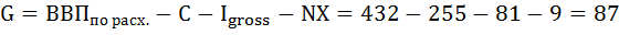 11) Теперь зная ВВП, сумму валовых частных внутренних инвестиций, величину чистого экспорта и величину потребительских расходов (consumption spending – C), можно определить государственные закупки товаров и услуг (government spending – G)
