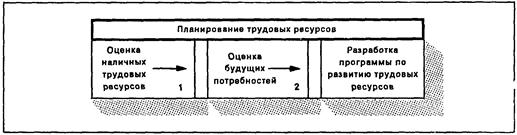 ПЛАНИРОВАНИЕ ЛЮДСКИХ РЕСУРСОВ по существу представляет собой применение процедур планирования для комплектации штатов и персонала. Для удобства можно считать, что процесс планирования включает в себя три этапа (рис. 19.2):