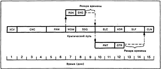 Рис. 21.6. Сетевой график строительства гаража (фрагмент).