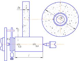 Рис. 2.7-Шлифование валика | V кр=(3,14·600·1112)/(1000·60)=34,9 м/с Эту скорость выбранный круг допускает. 3. Окружная подача (скорость враще- ния и число оборотов детали в минуту) определяется по эмпирической формуле [3, с.252]: V д=(Cv · Dк)/(Tm · t x· Вy) м/мин, где Cv =0,24; к =0,3; m =0,5; x =1,0; у =1,0. (таблица 2.30) В =0,42. |