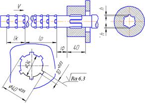 Протянуть шесть шлицев по размерам на чертеже. Материал детали - углеродистая сталь 45, σ в=65 кгс/мм2(650МПа). Протяжка изготовлена из стали Р6М5, стойкость протяжки Т =240 мин (рис. 2.8).