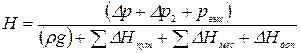 Для нахождения напора насоса (Н) необходимо знать перепады давления (