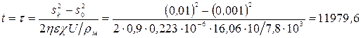 Скорость анодного растворения по мере съёма припуска будет уменьшаться по гиперболической зависимости. Поэтому для нахождения средней скорости определяем время, необходимое для удаления припуска, равное основному времени, по формуле 5.3: