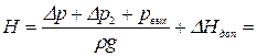 Определяем необходимый напор насоса Н по формуле 5.12, для чего предварительно находим: