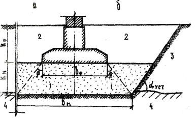 Рис.3.12. Схема вариантов устройства песчаной (гравийной) подушки при полной замене слабого грунта.