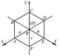 На рис. 6.3 показаны следы граней гексагональной призмы, параллельных оси Z (нормаль к плоскости чертежа). В трехосной системе координат (рис.6.3, а) символы граней будут: