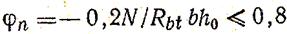 Коэффициент φn, учитывающий влияние продольных сил, определяют по следующим формулам: