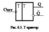 Т-триггеры (Toggle – кувыркаться) применяются для построения счетчиков импульсов, они, как правило, имеют счетный вход и два выхода прямой Q и инверсный