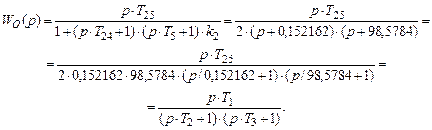 Рассчитываем общую передаточную функцию W 0(p) для соединения с отрицательной обратной связью по выражению (7.4):