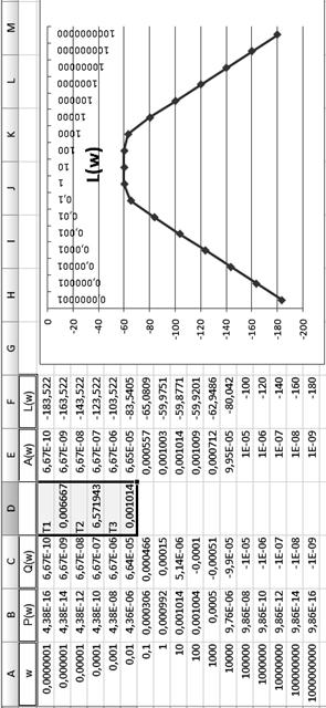 Логарифмическая частотная характеристика (ЛЧХ) рассчитывается по выражению и строится в логарифмических координатах по оси частот по декадам, т.е. при десятикратном изменении частоты