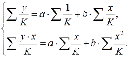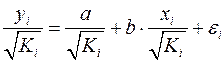 Оценка параметров нового уравнения с преобразованными переменными приводит к взвешенному методу наименьших квадратов, для которого необходимо минимизировать сумму квадратов отклонений вида