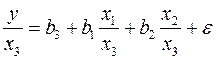 . В ней остаточные величины гетероскедастичны. Предполагая в них отсутствие автокорреляции, можно перейти к уравнению с гомоскедастичными остатками, поделив все переменные, зафиксированные в ходе