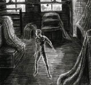 Дальше ясно ощущаю всем своим существом, что, пройдя диван, начинаю проходить и сквозь пол (гула в голове уже не было). Провалился сквозь пол и завис на нижнем этаже (я живу в своём доме, и ниже располагается пустая комната, в которой никого в ночное время не было). Вокруг я ничего не увидел, кроме кромешной темноты. Вишу я в этой тьме, в полной неизвестности, а вокруг меня возник огромной силы гул, как от высоковольтных проводов. Чувствую, что этот вибрирующий гул и во мне тоже, а не только вокруг (нет плана действий – М.Р.).