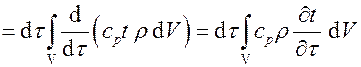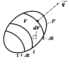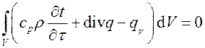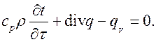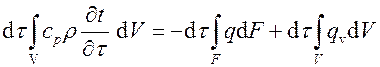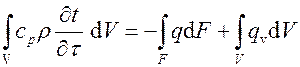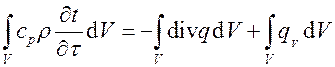 Знак минус появился потому, что теплота теряется объемом, т.е. с точки зрения термодинамики теплота отрицательная. Теплота, выделяемая внутри объема тела за время dt, определяется по формуле