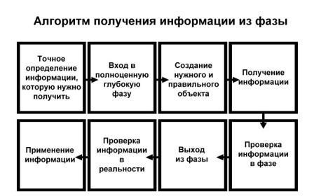 Сам алгоритм получения информации из фазы не представляет ничего сложного. Нужно только знать техники получения информации и способы ее проверки, не считая, конечно, естественных навыков пребывание в фазе.