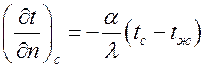 где индекс «с» указывает на то, что градиент температуры рассчитывается на поверхности тела. Получаем аналитическое выражение для граничных условий третьего рода: