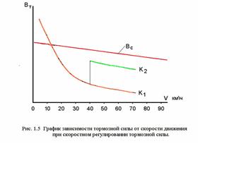 Скоростное регулирование тормозной силы. Изменение тормозной силы при уменьшении коэффициента сцепления при высоких скоростях движения сводится к увеличению нажатия на колодку за счет повышения давления в тормозном цилиндре. (Рис.1.5).