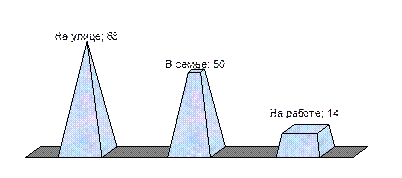 Среди женщин, подвергшихся сексуальному насилию, с 14% это произошло на работе, с каждой второй (50%) – в родном семейном очаге. А с двумя из каждых трёх (68%) изнасилованных женщин это несчастье случилось на улице. Для наглядности мы представили эти данные на рис. 4.13.