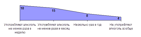 Рисунок 4.14 - Зависимость риска женщины стать жертвой сексуального насилия от частоты употребления алкоголя, в %.