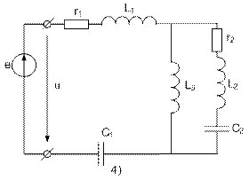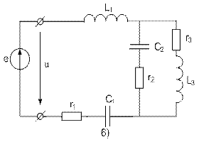 Задана электрическая схема рис. 2. Исходные данные для схемы приведены в таблице 2. Входное напряжение u(t) равное ЭДС e(t) изменяется по синусоидальному закону u = Um sin(ωt+j).