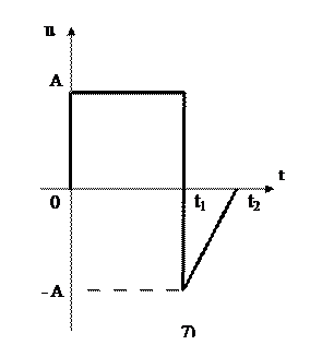 На вход электрической схемы рис.7.1 подаётся входное напряжение u(t), график которого представлен на рис.7.2. Варианты схем и графиков входного напряжения, а также параметры схем приведены в таблице 7. Прочерк в таблице соответствует отсутствию этого элемента в схеме (не рисуется).