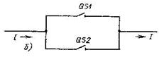 Токқа косылған АҚ қосылуларының ауыстырып қосуды өндіру, міндетті түрде аз кедергімен қосылуы керек. Мысалы, екі параллел айырғыштар QS1 және QS2 (сурет.34, б) егер айырғыштың бір бөлігі тоққа коылып тұрғанда, екінші айырғышты ажырату қауыпсіз. Егер бір айырғышты ажыратса тоқ бір бөліктен екінші бөлікке өтеді. Бұл жағдайда контактілерде доға құрылмайды.