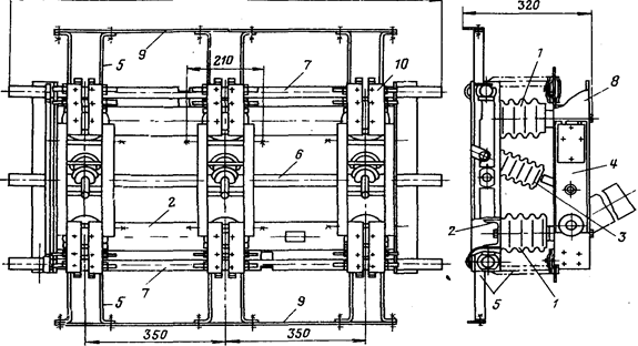 Сурет 35. РВР 10 кВ, 2000 А типті екі пышағы жерлестірілген жинақтары бор, үшполюсті
