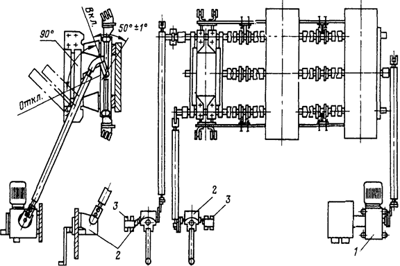 Наминалды тоғы 4000 А және одан да жоғары келтіруді біріншілік берілісін, қолмен немесе электрлікдвигатель арқалы басқару. Жерлестірілген пышақтар үшін бөлек келтірулер қолданылады, әдетте рычагты. Соңғылары негізгі пышақтарды келтіруді қоршайды, негізгі пышақтарістеп тұрғанда қосалқыжерлескен пышақтар істеп кетпеу үшін, сонымен қатар керісінше жерлескен пышақтар істеп тұрғанда негізгі пышақтар қосылып кетпеуі. Суретте 37. 10 кВ, 2000 А үшполюсті жерлестірілген пышығы бар айырғыш көрсетілген. 1. Келтірілген негізгі пышақтардың - электрқозғалтқышты, ал жерлескен пышақ 2- червячны. Барлық келтірулерде сигнал беруге және қошау алдын ала ескерілген.