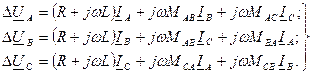 Алайда, өзара индуктивтіліктері МАВ, МВС және МСА әдетте фазалардың симметриялық емес орналасу салдарынан бірдей болмайды. Реакторлар фазасындағы кернеудің құлдырауы келесі өрнектер арқылы анықтауға болады: