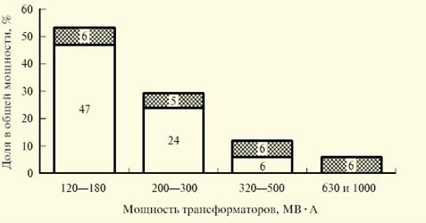 Отандық трансформаторлардың 1150 кВ кернеці әлемдегі ең жоғарғы болып табылады. 4.1- сурет диаграммада трансформаторлар және автотрансформаторлардың қуаттарын тарату берілген.