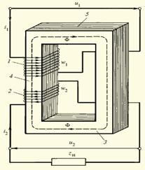 Трансформаторлар тұйқталған магнит жетектен 3 және орам сандары W1 және W2 екі орамдардан тұрады. Трансформатордың орамдары магнит өрісін жасау үшін қызмет етеді, оның көмегімен электр энергиясын беру және пайдалану шарттары бойынша талап етілетін ЭҚК-ті кернеу қамтамасыз етеді.