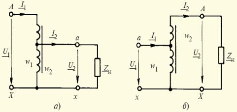 Сурет - 4.9. Бірфазалы төмендетуші және жоғарылатушы автотрансформаторлар.