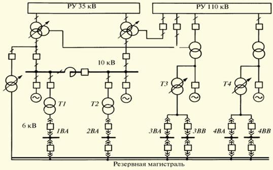 7.17 суретте төрт генераторлы араласқан ЖЭО-ның ө.м. электрмен жабдықтаудың сұлбасы келтірілген.