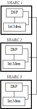 Благодаря большому объему внутренней памяти SHARC-процессоров (4 Мбит) этот способ подходит для большинства задач с фиксированным алгоритмом обработки данных. Его реализация позволяет снизить сложность системы, размеры платы, стоимость.