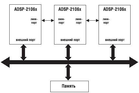 свойство процессоров SHARC помогает устранить необходимость в любых дополнительных аппаратных средствах при конфигурации кластерных многопроцессорных систем. В системах этого типа часто не используются ни локальная, ни глобальная внешняя память.