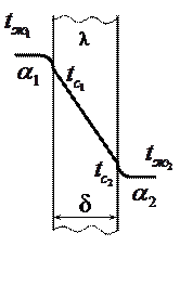 Постановка задачи. Пусть одна из сторон плоской стенки омывается жидкостью с температурой