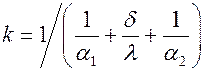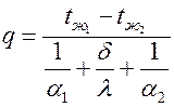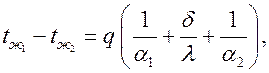 = const. Коэффициент теплопроводности материала стенки l = const. Требуется найти плотность теплового потока, передаваемого от одной жидкости к другой через разделяющую их стенку.