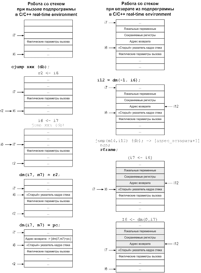 Рис.___. Работа со стеком при использовании команд cjump и rframe