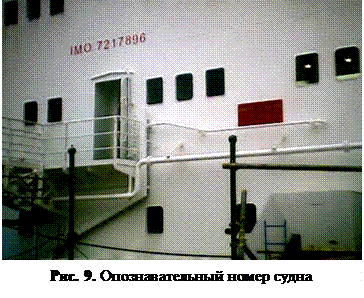 Правило 3 было дополнено положениями, которые регламентируют где на судне и каким образом должен быть нанесен опознавательный (идентификационный) номер, принятый системой опознавательных номеров судов ИМО[7] (см. рис. 9). Опознавательный номер присваивается ИМО с момента ввода судна в эксплуатацию и не меняется до конца службы этого судна даже при смене владельца или смене страны флага. Состоит номер из трех латинских букв – ІМО, и семизначного номера.
