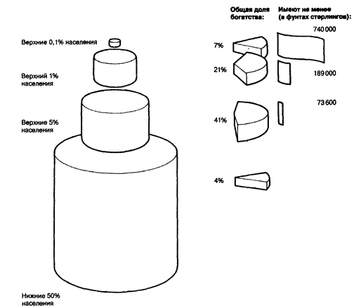 Рис. 4. Личное богатство различных групп населения Великобритании, 1987. Источник: New Society, 24 April. 1987. P. 44