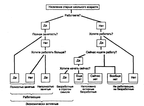 Рис. 16. Систематика возможных состояний занятых, безработных и неработающих.