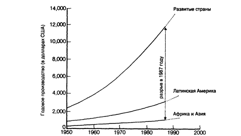 Рис. 17. Расхождение в развитии индустриальных стран и стран третьего мира с 1950 года.