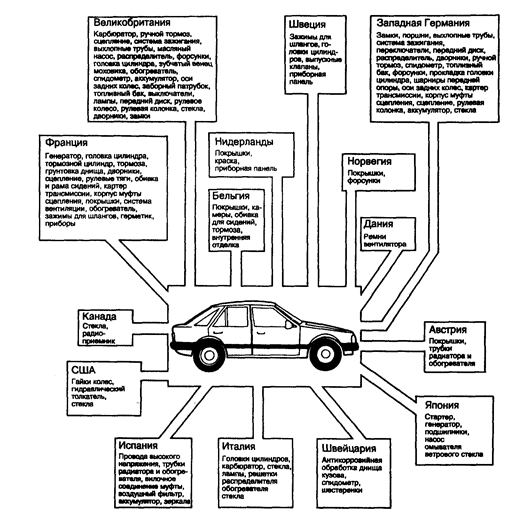 Рис. 18. Глобализация промышленности: сеть по производству деталей европейской модели “форд эскорт”.