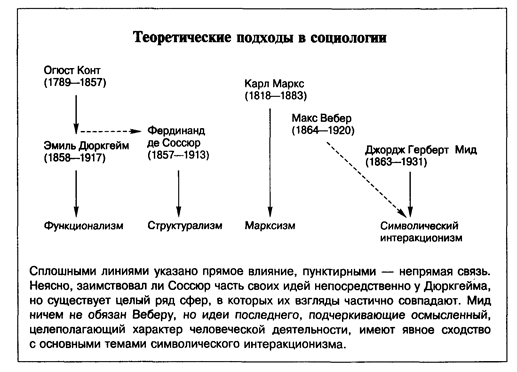 Основные теоретические позиции сегодняшней социологии являются продолжением подходов, сформировавшихся в более ранний период. Важнейшими из них считаются функционализм, структурализм, сим^ический интеракционизм и марксизм.
