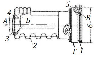 – радиальное биение поверхности Б относительно поверхности Г должно быть не более 0,05 мм, поверхности В относительно поверхности Г не более 0,08 мм, а взаимное биение поверхностей Б и В не более 0,06 мм;