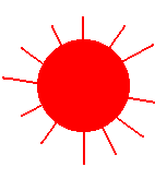 Солнечные лучи. Выбрав инструмент Линия,установите максимальную толщину. Проведите отрезок через солнечный круг, получая сразу два противоположных луча. Повторив эту операцию несколько раз, вы увидите солнце с прямыми, равномерно расположенными лучами.