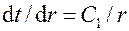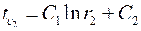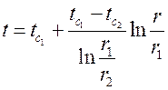, подстановка значений которых позволяет получить закон изменения температуры по толщине цилиндрической стенки: